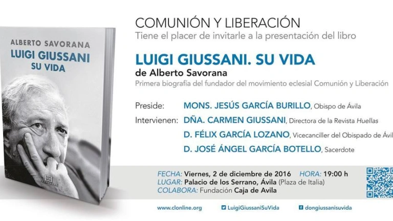 En la ciudad de Ávila, el acto de presentación de la biografía de Giussani tendrá lugar el viernes 2 de diciembre, a las 19 horas en el Palacio de Los Serrano (Plaza de Italia, 1). Estará presidido por el Obispo de Ávila, Mons. Jesús García Burillo, y contará con las intervenciones de Carmen Giussani (Directora de la revista "Huellas"), Félix García Lozano (Vicecanciller de la Diócesis de Ávila), y José Ángel García Botello (sacerdote).