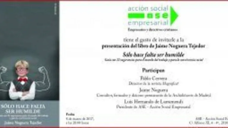 Acción Social Empresarial (empresarios y directivos cristianos), presenta en Madrid el libro de Jaime Noguera, Sólo hace falta ser humilde, guía con 22 sugerencias para el mundo del trabajo y para la convivencia social.