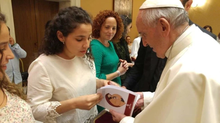El lunes 26 de junio, con motivo de la audiencia privada al grupo de mujeres separadas "Santa Teresa" de la Archidiócesis de Toledo, el Papa Francisco recibió de manos de la trabajadora social de Cáritas Diocesana de Toledo, Cristina Díaz-Rincón un ejemplar de "La alegría de la Misericordia".