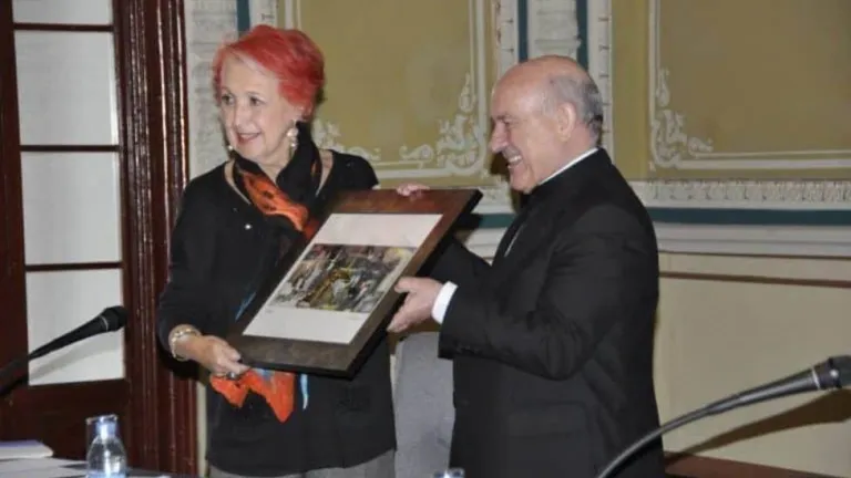 Este martes 7 de febrero tuvo lugar en el Salón del Trono de Alma Mater Museum la entrega del premio ?Comunicar con valores 2017? a la conocida periodista Rosa María Calaf. Este premio, creado por el arzobispado de Zaragoza, quiere alabar la comunicación y el periodismo con mayúsculas, con vocación de servicio, armado de ética y trabajo, de sensibilidad por el débil y amor a la actualidad.