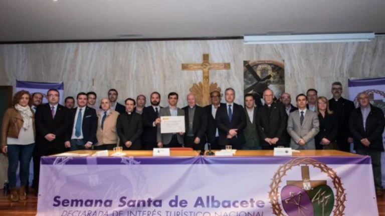 l Obispado de Albacete, el Excmo. Ayto. de Albacete, la Subdelegación del Gobierno de España en Albacete y la Junta de Cofradías de la Semana Santa han realizado una rueda de prensa este viernes día 31 de marzo para ofrecer el comunicado oficial, que por parte del Ministerio de Industria, Turismo y Energía se ha realizado a la Junta de Cofradías, concediendo la declaración de Fiesta de Interés Turístico Nacional a la Semana Santa de Albacete.