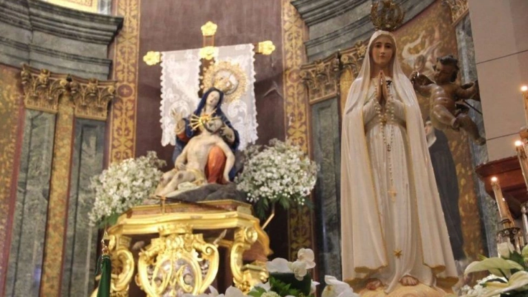La imagen de la Virgen Peregrina de Fátima ha permanecido en la parroquia de Santa María de Gracia de Cartagena durante todo el fin de semana, junto a las reliquias de los santos pastorcillos, los hermanos San Francisco Marto y Santa Jacinta Marto.