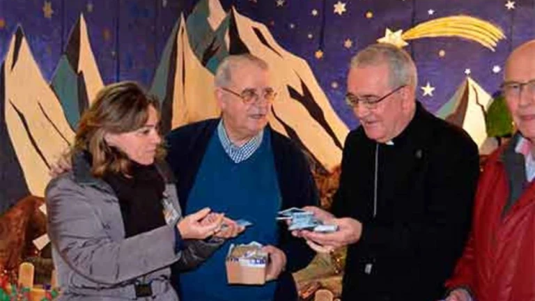 El obispo Ángel Pérez Pueyo ha entregado esta mañana a los internos del Centro Penitenciario de Zuera, en nombre de la Iglesia aragonesa, 500 tarjetas telefónicas recaudas en una campaña benéfica