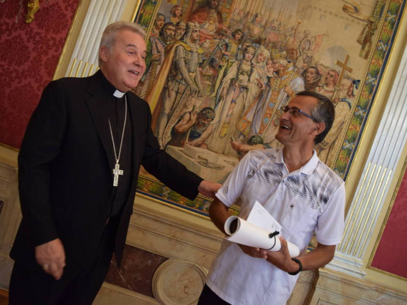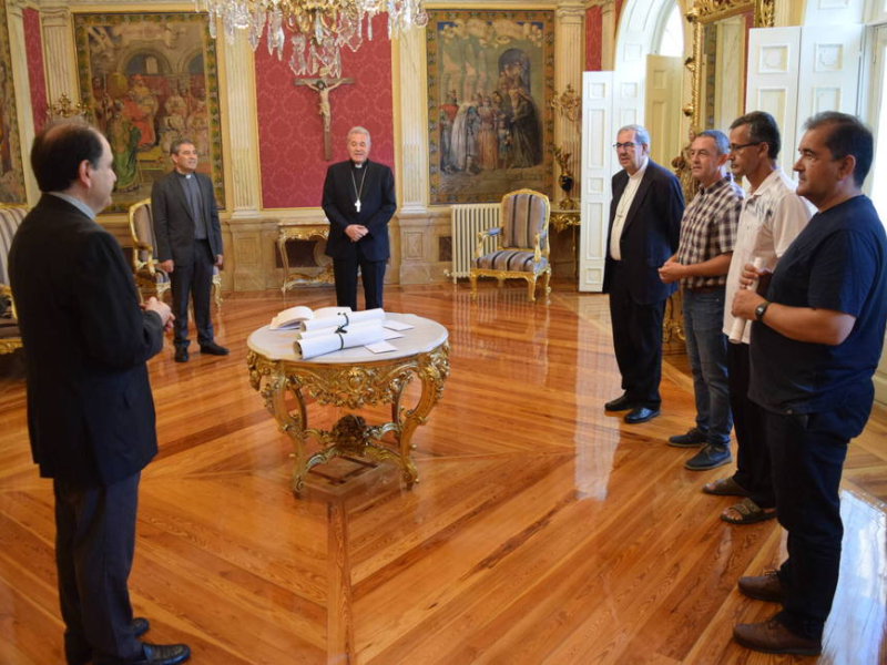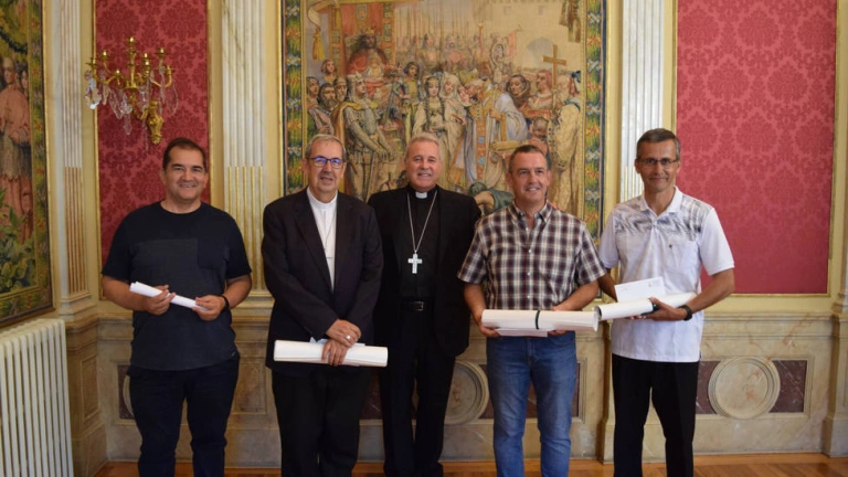 El arzobispo de Burgos, don Mario Iceta Gavicagogeascoa, ha hecho entrega este viernes, 12 de agosto, a algunos misioneros burgaleses el dinero recolectado a través del fondo solidario puesto en marcha durante el Año Santo de la Catedral.