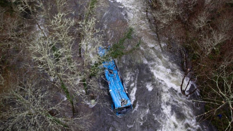 Ya son 6 los fallecidos en Pontevedra después de que un autobús con pasajeros se precipitara por un puente desde unos 75 metros y cayera al rio Lérez. A primera hora de este 25 de diciembre, los equipos de rescate encontraron en el interior del autobús a la tercera víctima mortal, una mujer, y a mediodía hallaron en el río, aguas abajo cerca del punto del siniestro, al cuarto fallecido.
