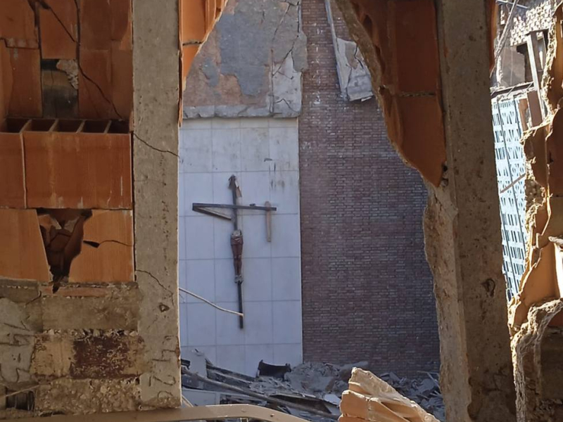 El templo y el colegio son edificios diferentes por eso las clases no se interrumpieron, aunque ante el ruido de la demolición este viernes se han suspendido hasta el lunes 26