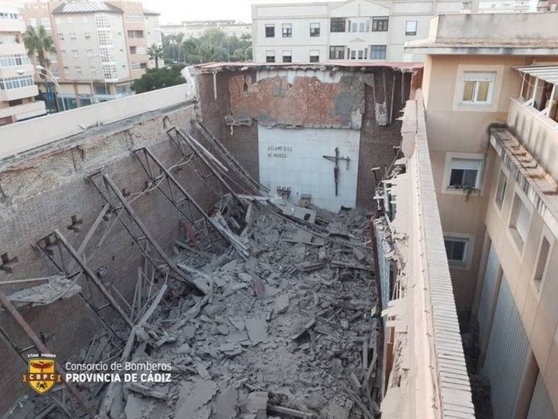 Así explicaba el equipo directivo del colegio de la Fundación ACI en Cádiz (de las Esclavas del Sagrado Corazón), en una carta dirigida a las familias. Este jueves se derrumbó el techo, antes de que pudiera ser apuntalado, y la única zona afectada es el templo, “mientras que el resto del edificio donde se encuentran las aulas no presentan peligro por ser un edificio anexo pero independiente que se construyó con anterioridad”.