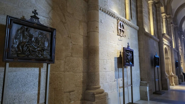 Durante la Cuaresma y la próxima Semana Santa, en las naves de la catedral de Santiago, se volverán a colocar los 14 relieves que conforman el Via Crucis de finales del siglo XIX. Para ello se han instalado unos soportes sobre los que van apoyados, de manera que, una vez terminado el tiempo cuaresmal, pueden retirarse fácilmente. Hasta 2020 estuvieron colgados en los paramentos, en diferentes espacios de las naves. Con motivo de las obras de restauración en el interior de la catedral fueron retirados. Ahora, tras un proceso de limpieza y restauración, quedan colocados en los nuevos soportes que mejoran su visión y permite un mejor transporte.