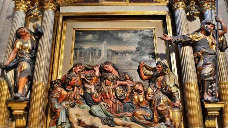 A continuación, la visita guiada centrará la mayor parte del tiempo en el retablo de "El Llanto sobre Cristo muerto", del escultor franco-español, Juan de Juni, terminado en 1571 y que, actualmente, supone uno de los grandes exponentes de la técnica del manierismo por su emotividad y expresividad. La escena representa el momento en el que el cuerpo de Cristo se deposita sobre un sudario, acompañándole su Madre, San Juan, las Santas Mujeres, José de Arimatea y Nicodemo.
