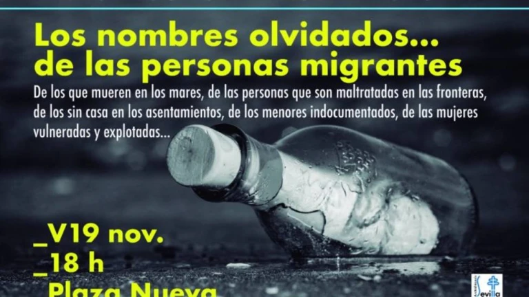 La Delegación Diocesana de Migraciones de Sevilla celebrará un Círculo de Silencio el viernes 19 de noviembre a las seis de la tarde en la Plaza Nueva, de Sevilla. Con el lema "Los nombres olvidados de las personas migrantes", la Pastoral de Migrantes pretende apelar a la conciencia de las personas del entorno sobre el drama que viven las personas desplazadas. "De los que mueren en los mares, de las personas que son maltratadas en las fronteras, de los sin casa en los asentamientos, de los menores indocumentados, de las mujeres vulneradas y explotadas".