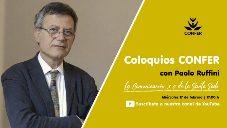 El próximo 17 de febrero tendrá lugar una nueva sesión de "Coloquios CONFER". En esta ocasión nos acompañará el periodista Paolo Ruffini, prefecto del Dicasterio para la Comunicación. El encuentro comenzará a las 17:00 horas y será retransmitido en directo y en abierto por el canal de Youtube. Tras la charla con el prefecto Ruffini podrá haber un tiempo de diálogo por medio del chat.
