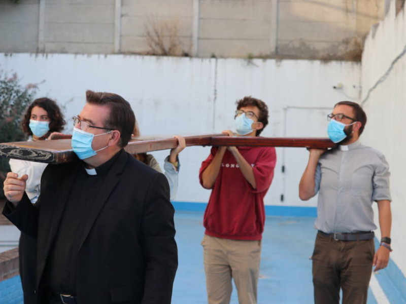 La sede de la Conferencia Episcopal Española ha acogido esta mañana la Cruz y el icono de la Jornada Mundial de la Juventud (JMJ). En torno a las 9.15 horas, un grupo de jóvenes, junto con el director del secretariado de la Subcomisión Episcopal para la Juventud y la Infancia, Raúl Tinajero, han portado estos dos símbolos hasta colocarlos en las peanas que los situaban ante la imagen de la Virgen, en la parte exterior de la Casa de la Iglesia. Junto a ellos, Américo Aguiar, obispo auxiliar de Lisboa y presidente de la "Fundación JMJ Lisboa 2023".