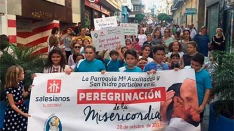 Alumnos y educadores del colegio salesiano San Miguel Arcángel de Madrid peregrinaron el 28 de octubre desde las instalaciones del centro hasta la catedral de La Almudena para conmemorar el año santo de la Misericordia y ganar el jubileo. Allí, los esperaba el arzobispo, Mons. Carlos Osoro, que presidió la celebración de la Eucaristía. En la tarde de ese día, centenares de feligreses de la parroquia de María Auxiliadora y San Isidro de Algeciras (Cádiz) repetían el mismo gesto, en este caso desde su iglesia hasta la parroquia de Nuestra Señora de la Palma, templo jubilar de la localidad gaditana. Son solo dos ejemplos de cómo ha vivido la Familia Salesiana este Año Santo de la Misericordia convocado por el Papa Francisco, que se clausurará en las diócesis este domingo, 13 de noviembre.