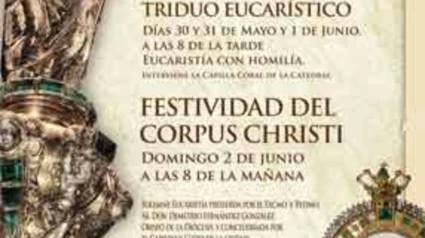 El próximo día 2 de junio se celebra la solemnidad del Cuerpo y la Sangre de Cristo. Por este motivo, se ha organizado un triduo preparatorio en la Catedral y el domingo, la Eucaristía y la procesión con la custodia de Arfe.La festividad del Corpus Christi se celebra en la diócesis de Córdoba el día 2 de junio. Previamente tendrá lugar un triduo eucarístico del 30 de mayo al 1 de junio, a las 20:00h en la Catedral.