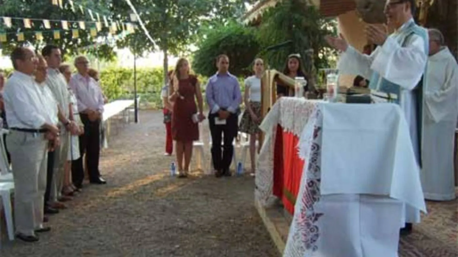 18?00 h. Misa solemne en los jardines de la ermita, cantada por la coral "Veus de Lledó", con asistencia de la representacion municipal, Violant, Dones de Companya y Cabildo de la Germandat dels Cavallers de la Conquesta.