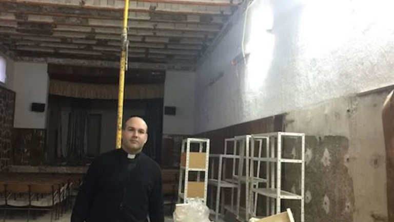 Algunos de sus salones se encuentran cerrados desde hace años y apuntalados, al igual que la casa parroquial, por riesgo de derrumbe. "Tenemos un salón y un cuarto pequeño habilitado para catequesis, pero poco más. En el templo se caen trozos del techo y de la pared, a veces. Además, el retablo (que es de madera) está podrido", asegura el sacerdote.