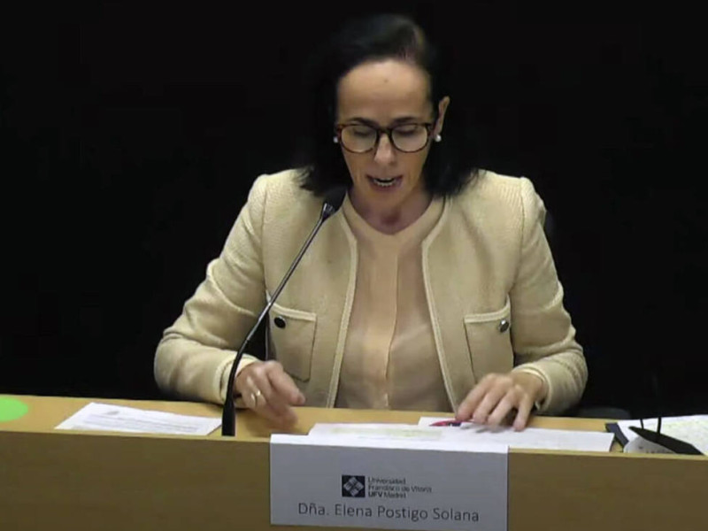 La primera intervención en la UFV en la presentación de este manifiesto ha correspondido a la doctora Elena Postigo, directora del Instituto de Bioética de la Francisco de Vitoria. Después de mencionar sucintamente algunas de las conclusiones del seminario de estudio sobre la Ley de Eutanasia, que tuvo lugar en el mismo centro universitario el pasado 11 de febrero, Postigo ha querido subrayar que esta mirada antropológica que arrojan, además de ser crítica, es propositiva, focalizándose en primera estancia en la dignidad humana.