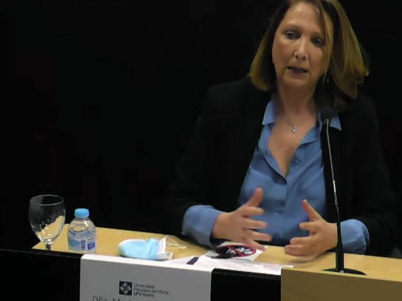 La vicerrectora de Profesorado y Ordenación Académica de la Universidad Francisco de Vitoria y Profesora Titular de Teoría del Derecho, María Lacalle, ha cogido el turno de palabra para abordar desde una perspectiva jurídica esta Ley de Eutanasia.