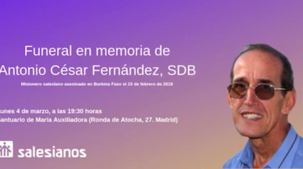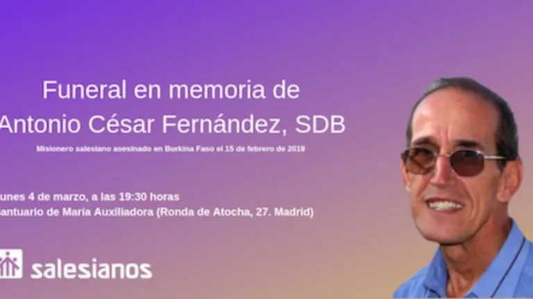 Los Salesianos celebrarán, el próximo lunes 4 de marzo a las 19:30 horas, en la parroquia santuario de María Auxiliadora de Madrid (Ronda de Atocha, 27), un funeral en memoria del misionero salesiano Antonio César Fernández. Invitan, a las personas que lo deseen, a unirse a esta Eucaristía de Acción de Gracias por una vida entregada al servicio del Evangelio.