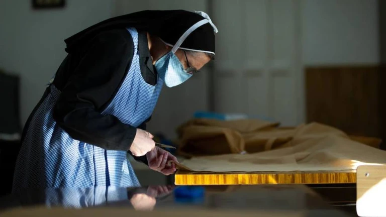 Muchas son las personas que han cambiado su quehacer diario para fabricar todo aquello que pueda ayudar a hospitales y residencias. En Granada, las monjas del convento de las Comendadoras trabajan en cuerpo y alma en la confección de trajes de protección que luego llevarán los sanitarios en hospitales y centros de salud o el personal de residencias de mayores. Funcionan en cadena: unas hilvanan y otras fijan. Son expertas costureras, en sus talleres hacen juegos de sábanas, mantelerías? hasta el palio de la Virgen de la Amargura. Pero todo esto está aparcado en este momento.