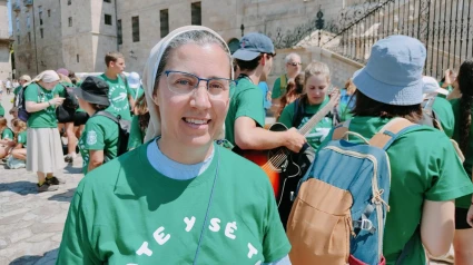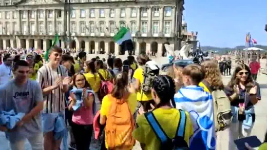 Los jóvenes ya llenan la plaza del Obradoiro de Santiago de Compostela. Entre ellos, un grupo de más de dos centenares de peregrinos de las tres diócesis extremeñas, Mérida-Badajoz, Coria-Cáceres y Plasencia. “Somos del Hogar Nazaret y empezamos el día 29 con cinco etapas muy emocionantes, muy plenas, algunas con dificultades”.