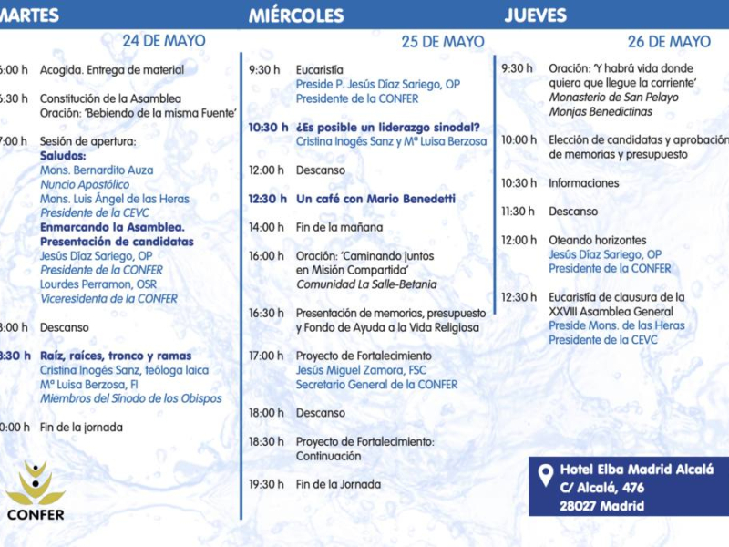 La Conferencia Española de Religiosos, CONFER, constituida por los superiores mayores de los institutos religiosos y sociedades de vida apostólica establecidos en España, celebra esta semana en Madrid su XXVIII asamblea general bajo el lema 'Corrientes de sinodalidad'.