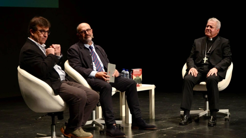 El escritor Javier Cercas y el arzobispo de Burgos, Mario Iceta han protagonizado en el Teatro Principal de la capital burgalesa el acto inaugural de la 49 Feria del Libro con una reflexión sobre la vida, la muerte, el cristianismo, la Iglesia y la herencia del Papa Francisco, además de presentar su último libro, 'El loco de Dios en el fin del mundo'.