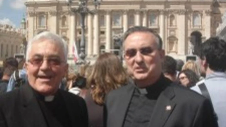 Foto: Mateo Blanco (izda.) con Sebastián González, su predecesor, en la plaza de San Pedro en el Vaticano