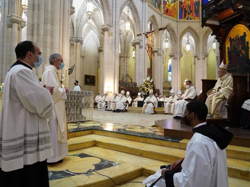 La celebración, que se ha desarrollado conforme a las pautas de las autoridades sanitarias y se ha podido seguir en directo por TRECE, ha sido presidida por el arzobispo de Madrid, cardenal Carlos Osoro. Ha concelebrado, entre otros, el cardenal Carlos Amigo, OFM, arzobispo emérito de Sevilla.