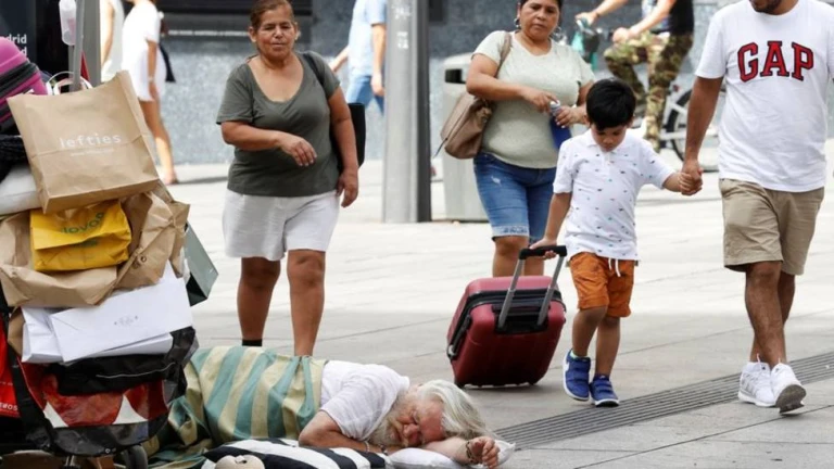 El padre Ángel, fundador de la ONG Mensajeros de la Paz, ha abierto a las personas que viven en la calle la parroquia de San Antón de Madrid para que descansen un rato al fresco del interior del templo y darles agua con la que paliar los efectos de calor que azota a esta comunidad y a casi toda España este fin de semana, con temperaturas que alcanzan o superan los 40 grados.