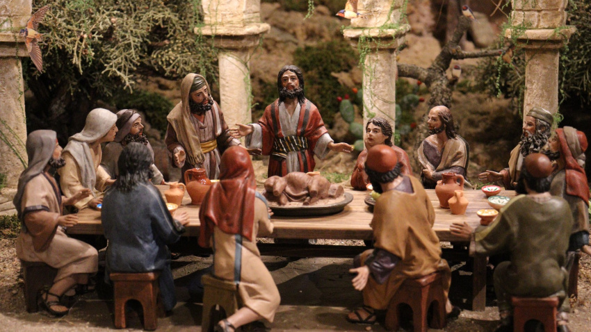 Las figuras que componen el montaje son obra del reconocido artesano José Luis Mayo Lebrija, a quien el padre Gimeno admira profundamente. El conjunto también incluye creaciones de la imaginera catalana Montserrat Ribes para recordar que "en medio de la pasión hay personas que no se enteraron de nada, que siguieron con su vida cotidiana".