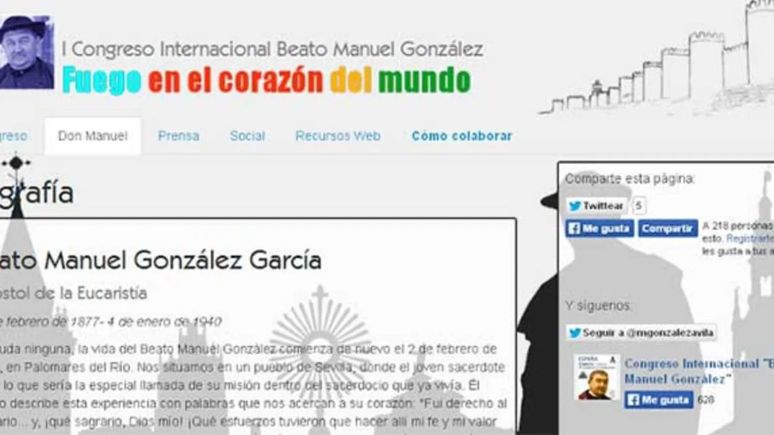 Dos centenares de personas procedentes de diferentes países de América y Europa se encontrarán en Ávila desde el 29 de abril al 2 de mayo para celebrar el I Congreso Internacional "Beato Manuel González".