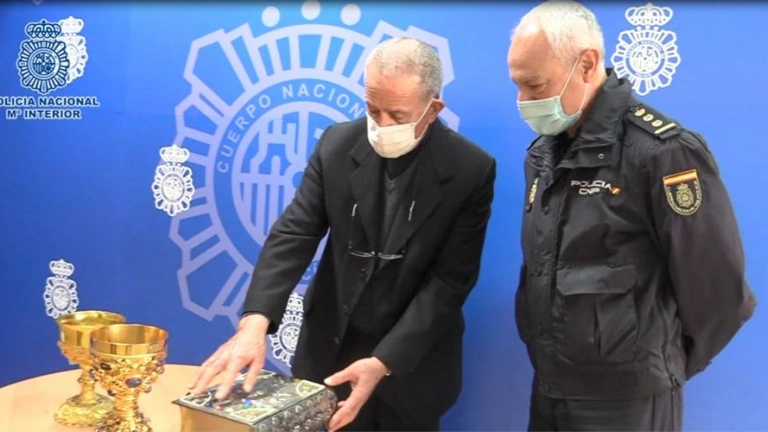 Al varón que ofrecía estos objetos en un portal de compra-venta entre particulares se le imputa un delito de robo con fuerza agravado por el valor reconocido de los efectos. El pasado viernes el comisario jefe de la Comisaría de Hortaleza hizo entrega al párroco de los tres objetos recuperados.