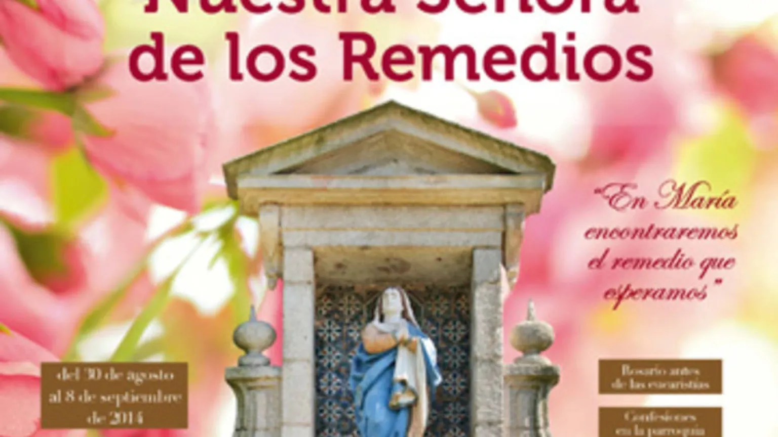 Este viernes 29 de agosto, víspera del comienzo de la Novena en honor a Nuestra Señora de Los Remedios, Monseñor Lemos Montanet bendecirá en la parroquia de María Auxiliadora la nueva imagen de la Virgen de Los Remedios, que se se trasladará a continuación de forma solemne en procesión al santuario de Los Remedios. Una vez allí tendrá lugar la bendición del santuario y el altar, tras las obras de recuperación de este templo que había quedado destruido por un incendio hace cuatro años.
