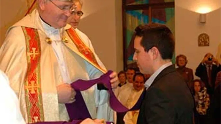 Es también el momento en el que el Obispo de Cartagena acoge y bendice a los nuevos muchachos que van a forma parte del Seminario Menor y les impone una beca morada, distintivo de este seminario.