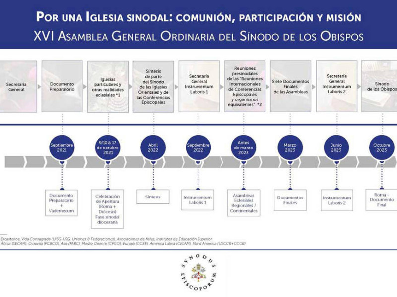 Este camino sinodal tendrá tres fases fundamentales. La fase diocesana, que se inauguró en Roma los pasados 9 y 10 de octubre, y a lo largo de todo este mes en cada Iglesia particular. En las diócesis, los trabajos se prolongarán hasta marzo de 2022. En una segunda fase, entre septiembre de 2022 y marzo de 2023, tendrán lugar las asambleas regionales y continentales, y finalmente,