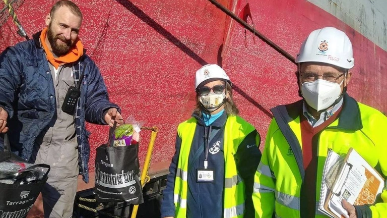 Stella Maris entrega más de 700 gorros de lana a las tripulaciones del puerto de Tarragona