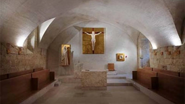 La nueva capilla ha querido conservar la disposición de la asamblea en forma de ‘U’ para aunar al mismo tiempo la dimensión horizontal de la fraternidad de todos y la centralidad única de Cristo, simbolizada en el altar.