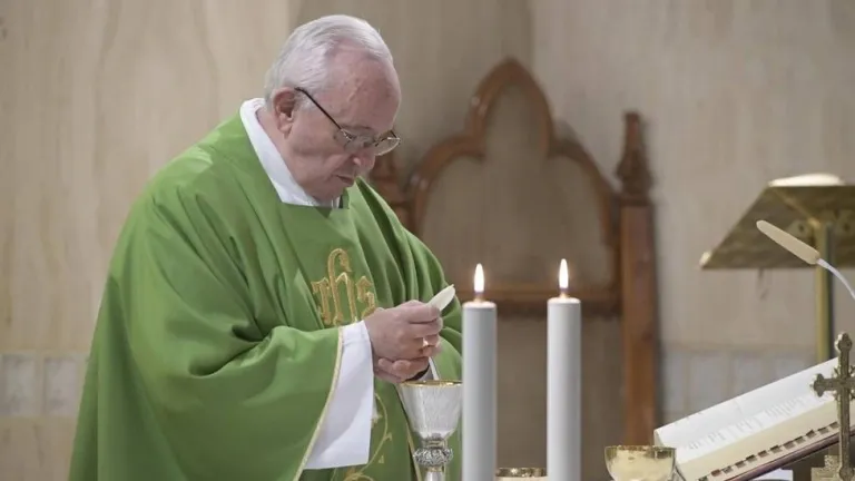 El Papa Francisco celebra la misa en la capilla de la casa Santa Marta (Vatican Media)