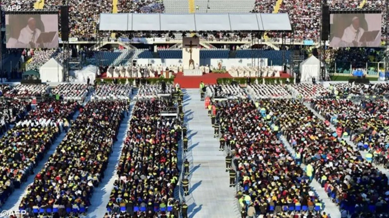 Foto: Celebración Eucaristíca presidida por el Papa Francisco, en el Estadio Comunal "Artemio Franchi" de Florencia al final de su Visita Pastoral. – AFP