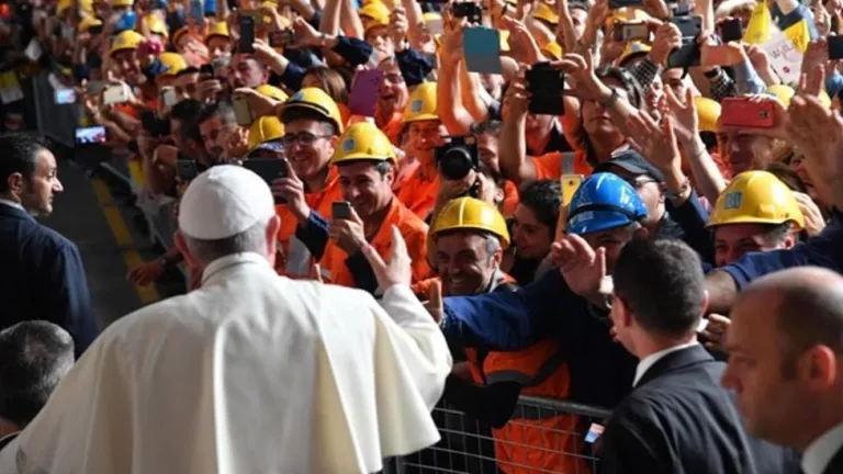 El Obispo de Roma se dirigió en automóvil a planta industrial Ilva para celebrar, a partir de las 8.30, su primer encuentro familiar y en forma de diálogo, con el mundo del trabajo. Aquí respondió a cuatro preguntas:
