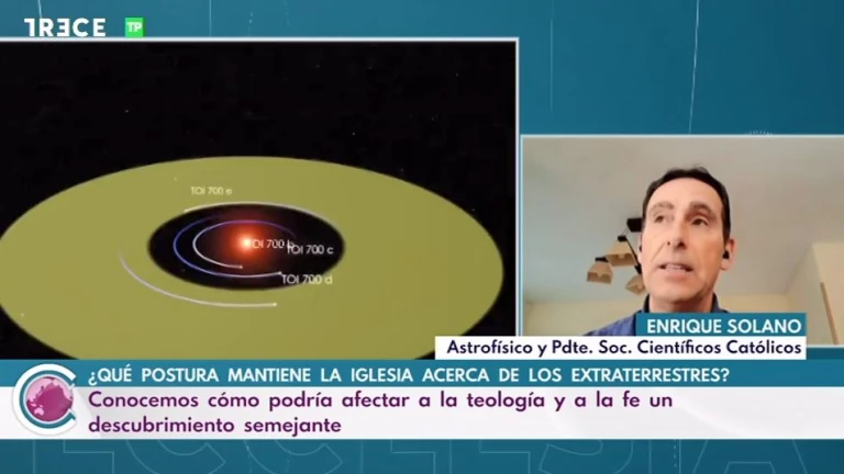 Iglesia Española Iglesia versus vida extraterrestre: ¿existiría un conflicto?00:00 Volumen CerrarRedacción digitalMadrid - Publicado el 19 feb 2023, 15:00 - Actualizado 20 feb 2023, 10:181 min lecturaFacebookTwitterWhatsappTelegramEnviar por emailCopiar enlacenuestros programasLa Linterna de la IglesiaCon Irene PozoViernes de 22:30h a 23:30hIglesia NoticiaCon Faustino CatalinaDomingos de 8:30h a 9:00hSanta MisaTodos los domingosDe 9:00h a 9:45hEcclesia al díaCon Raquel CaldasLunes a viernes a las 12.05hEcclesiaCon Álvaro SáezDomingos a las 13:00hMisioneros por el mundoCon Asell Sánchez-VicenteViernes a las 21:30h Lo último El Vaticano felicita a la Iglesia en España por su participación en el Jubileo de la Esperanza: El segundo país del mundo con más peregrinos 23 ene 2026, 16:39 2 min La Iglesia despide a las víctimas de Adamuz: Córdoba, Huelva, Sevilla y Madrid celebran funerales para rezar por los fallecidos 23 ene 2026, 15:16 2 min La defensa de los valores católicos europeos del Papa ante la Conferencia Europea: "Urgente necesidad de recuperar la Verdad" 23 ene 2026, 14:51 2 min El director de Proyecto Hombre tras su encuentro con el Papa: "La persona que ha caído y se ha levantado es más fuerte" 23 ene 2026, 13:11 8:26 min La Champions de los campanarios se juega en Toledo: 17 templos harán sonar sus campanas durante 40 minutos en un Torneo histórico 23 ene 2026, 12:34 2 min "La fe no ahorra el sufrimiento, pero sí le da sentido": la labor espiritual de la Iglesia de Córdoba tras el accidente de Adamuz 23 ene 2026, 11:15 7:50 min Visto en ABC Jorge Rey pone en alerta a España por la borrasca Ingrid y avisa de lo que llega de manera inminente