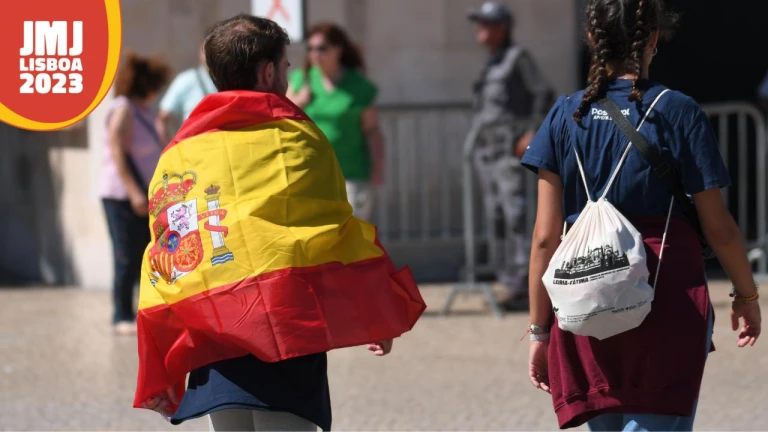 El cansancio del viaje no logra vencer a la ilusión que se ven en las caras de los peregrinos. Para muchos es su primera JMJ, como el de un grupo de adolescentes canarias, que en sus primeras horas en la capital de Portugal ya han compartido con otros peregrinos su experiencia: “Dormimos todos juntos, es un poco agobio, pero estamos superbien”, nos comenta en ECCLESIA una de las jóvenes.