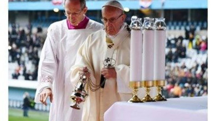 Alcancemos la santidad en la unidad, dice el Papa Francisco durante su homilía en el Swedbank Stadion Agencia SIC