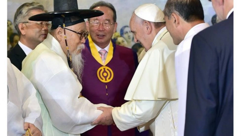 "Queridos amigos, que este encuentro nos confirme en nuestro camino", deseó el Papa, concluyendo su discurso con el entrañable recuerdo de su peregrinación a la bella tierra de Corea y asegurando que no cesa de rezar por el amado pueblo coreano y de pedirle a Dios el don de la paz y de la reconciliación fraterna.