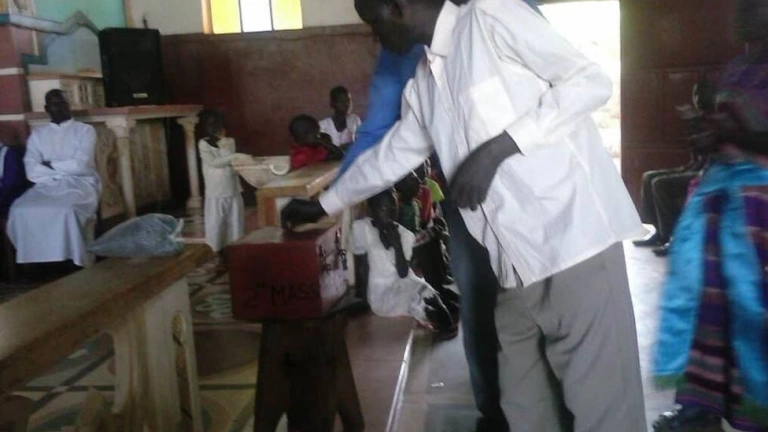 Se recogieron 45.500, chelines ugandeses, que equivalen a unos 11 euros. La gente es pobre y muy humilde, pero casi todas las personas se pusieron en fila para dar lo que podían.