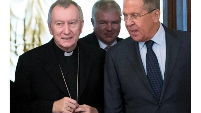 Foto: El cardenal Pietro Parolin y el Ministro del Exterior Ruso, Serguéi Lavrov. – AP
