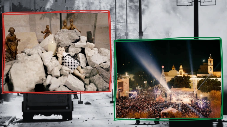 En diciembre de 2024, el sentimiento era el mismo, solo cambiaba la cifra, igual de dura, igual de fría, igual de heladora, pero mucho, mucho más alta: cuarenta y cinco mil quinientos cincuenta y tres. Cuatro. Cinco. Cinco. Cinco. Tres. 45.553 personas fulminadas por las bombas, la mitad mujeres y niños. Una distinción que hacemos de forma tristemente habitual en los medios de comunicación, como si, sobre el hombre palestino, pesara una presunción de culpabilidad que le deshumaniza y le despoja del derecho a ser igualmente llorado. Tampoco llegó la esperanza a los corazones de Belén, tampoco se celebró la Navidad.