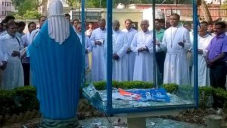 En las primeras horas de la mañana del viernes personas no identificadas, han dañado 4 estatuas de la Virgen en la iglesia de St. Mary en Agra. Los vándalos han sacado las estatuas de sus nichos y las ataron con cadenas para perros alrededor de la imagen de la Virgen con en brazos al Niño Jesús.