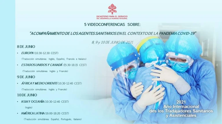 Con el objetivo de actualizar este objetivo fundamental, el Dicasterio para la Promoción del Desarrollo Humano Integral organiza cinco videoconferencias sobre el tema "Acompañamiento de los trabajadores sanitarios en el contexto de la pandemia Covid-19", que se celebrarán los días 8, 9 y 10 de junio de 2021 y en las que participará la CONFER.